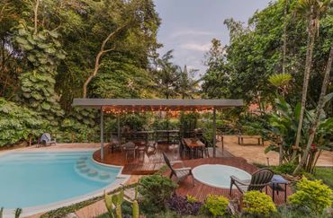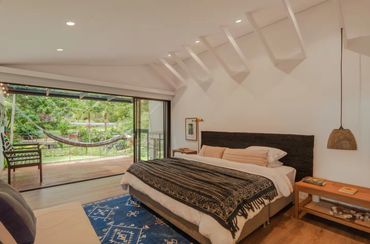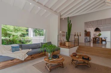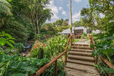 This serene Queen Room opens directly to the lush vegetation surrounding the property, offering a peaceful connection to Medellín’s vibrant nature. Wake to soft light filtering through the greenery and enjoy the calming sounds of the garden just steps from your door.