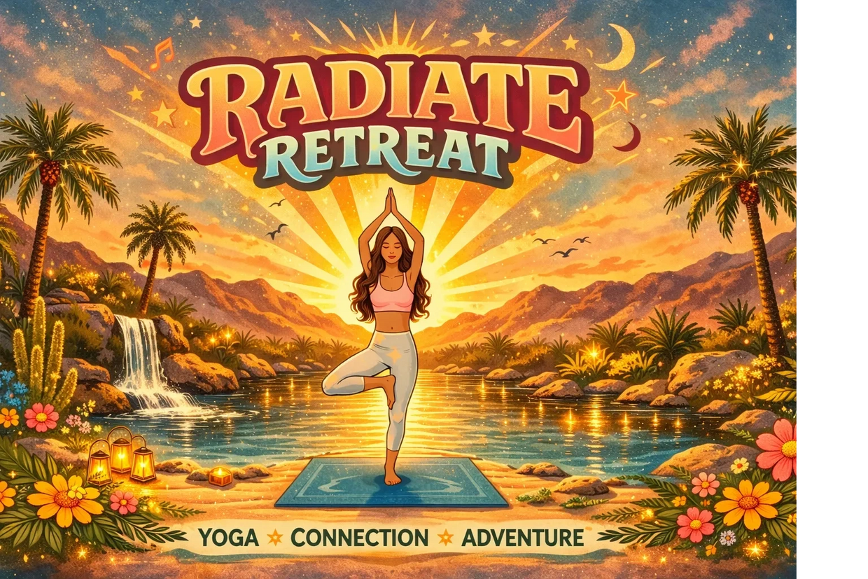 Set in the vibrant energy of Indio, this weekend blends movement, connection, sunshine, and adventure. Expect feel-good yoga flows, grounding practices, laughter, golden hour hangs, and space to recharge your spirit.